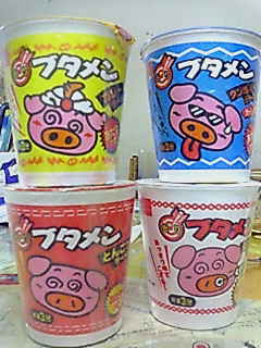ブタメン4つもレジ持ってくの恥ずかしかったけど食べてみたかったので買ってみた。2つで105円だし。。。