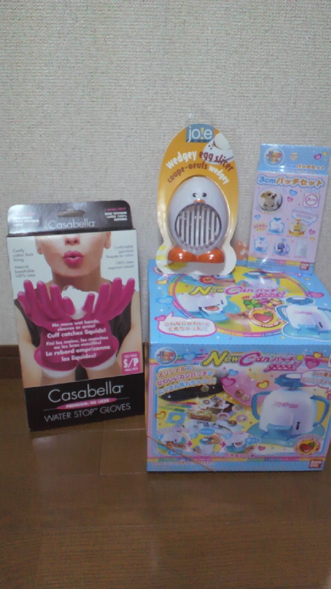 きりんさんからはゴム手袋に穴空いて使えなくなったことをぼやいてたのでオッシャレなゴム手とゆでたまごカッターを(。><)
