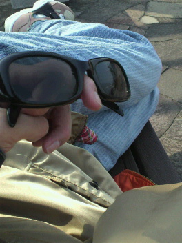 ↑昼寝するアニキの足とアニキから借りたグラサン