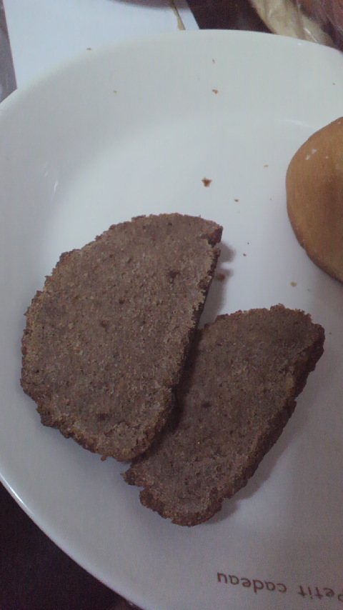 通称「黒パン」とか言われてるみたい、固くて酸味が強いのが特徴で、だいたいバターをつけて食べるんだけど、このライ麦パンはなにも塗らなくてもおいしく食べれるのです(´∀`*)