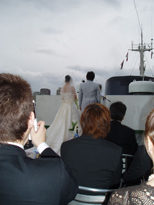 残念ながら曇り空だったけど雨も止んで船の上で式を行いましたv