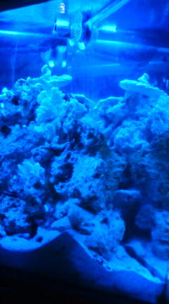 個室にも目の前に青く光る水槽!